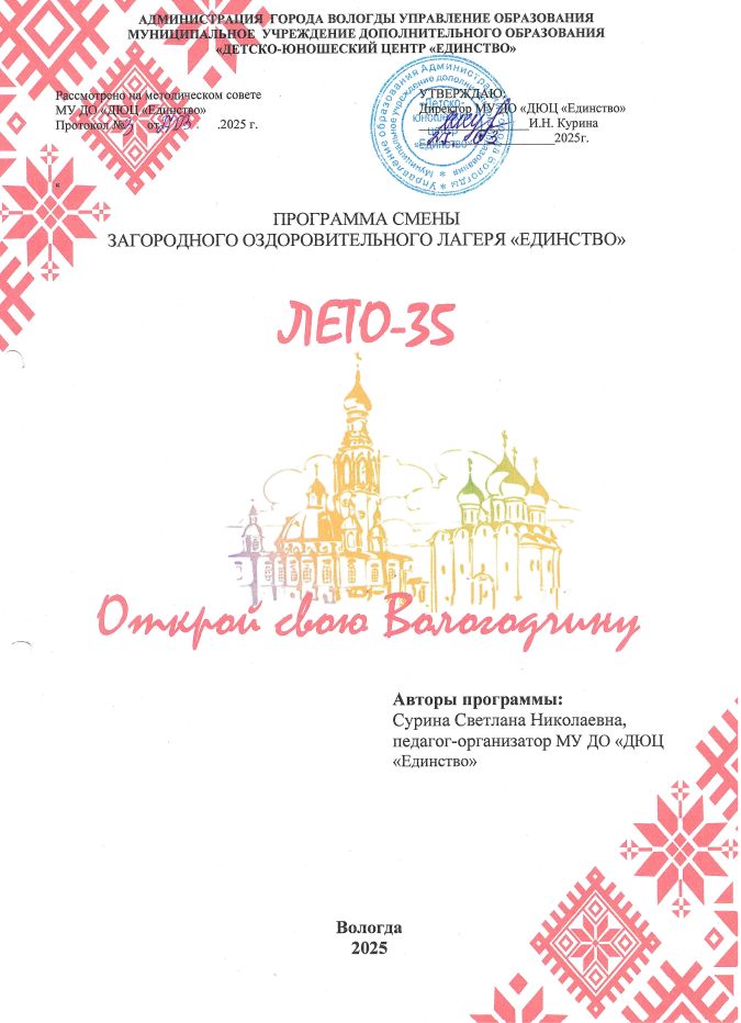 Программа воспитания ЗОЛ «Единство» на 2025 г.